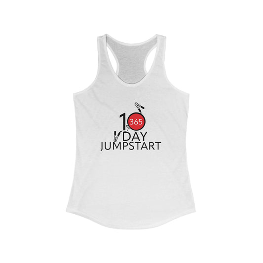 J365 - 10 Day Jumpstart! Women's Racerback Tank - Fitness Apparel, Gym Wear, Workout Gear, Motivational Shirt, Fitness Gifts